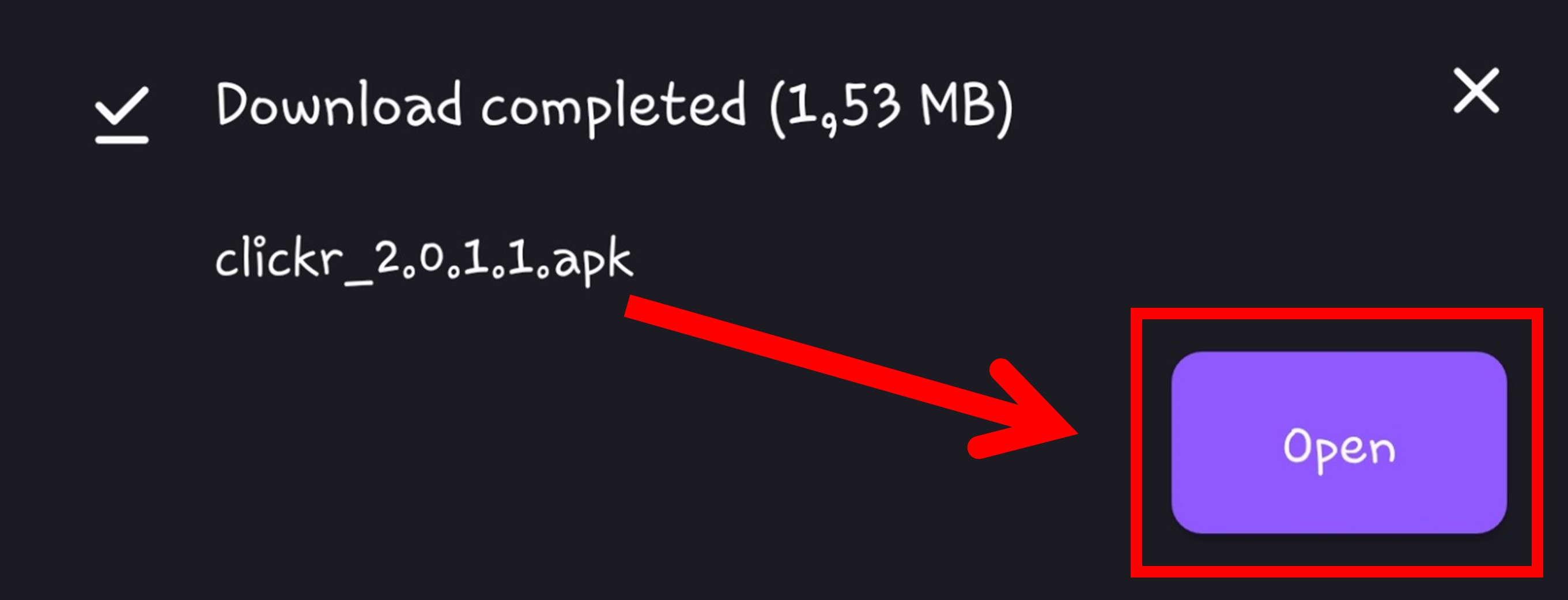 If there is no browser window popping up after the download has finished, you have to manually open the apk file.